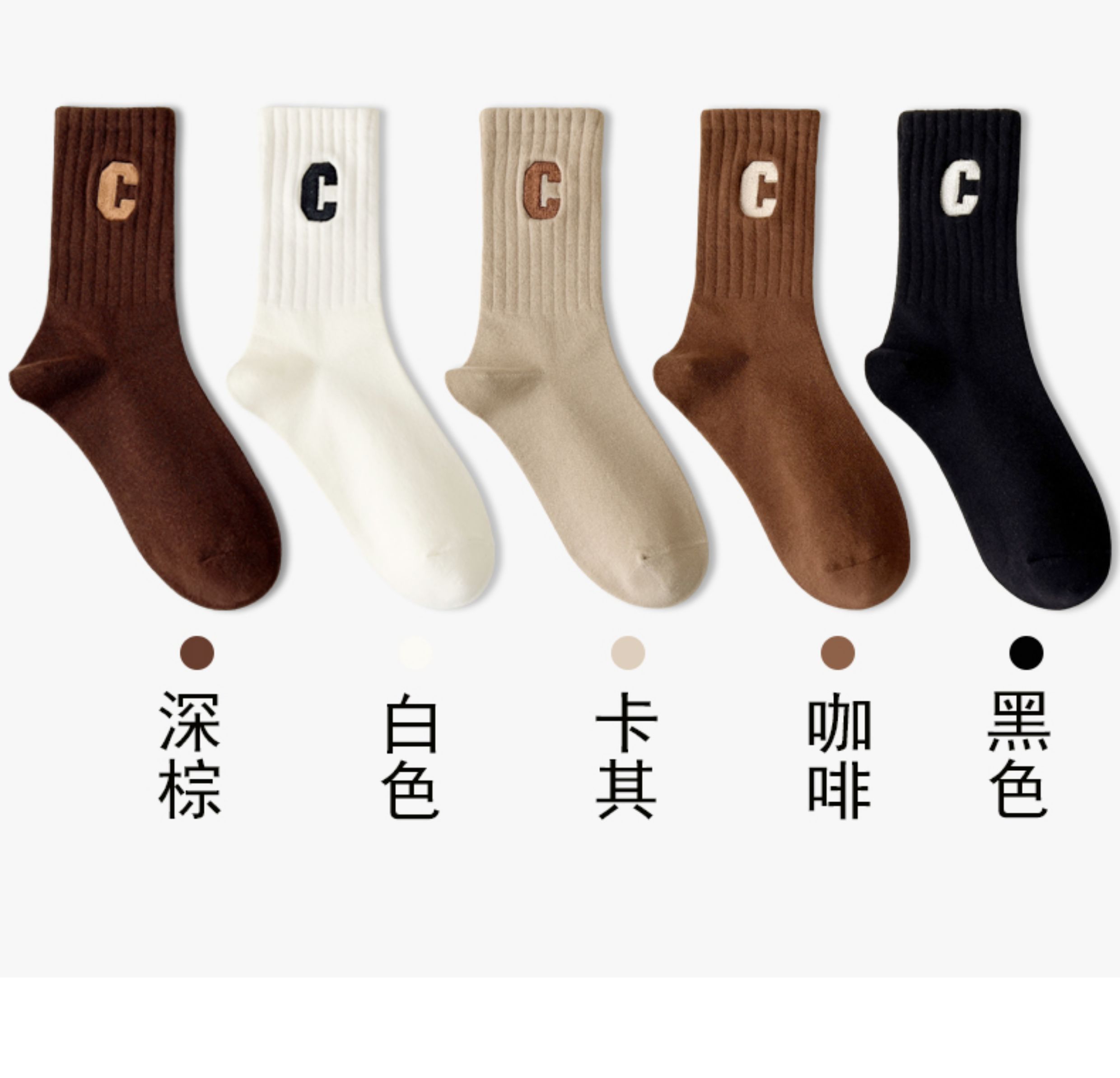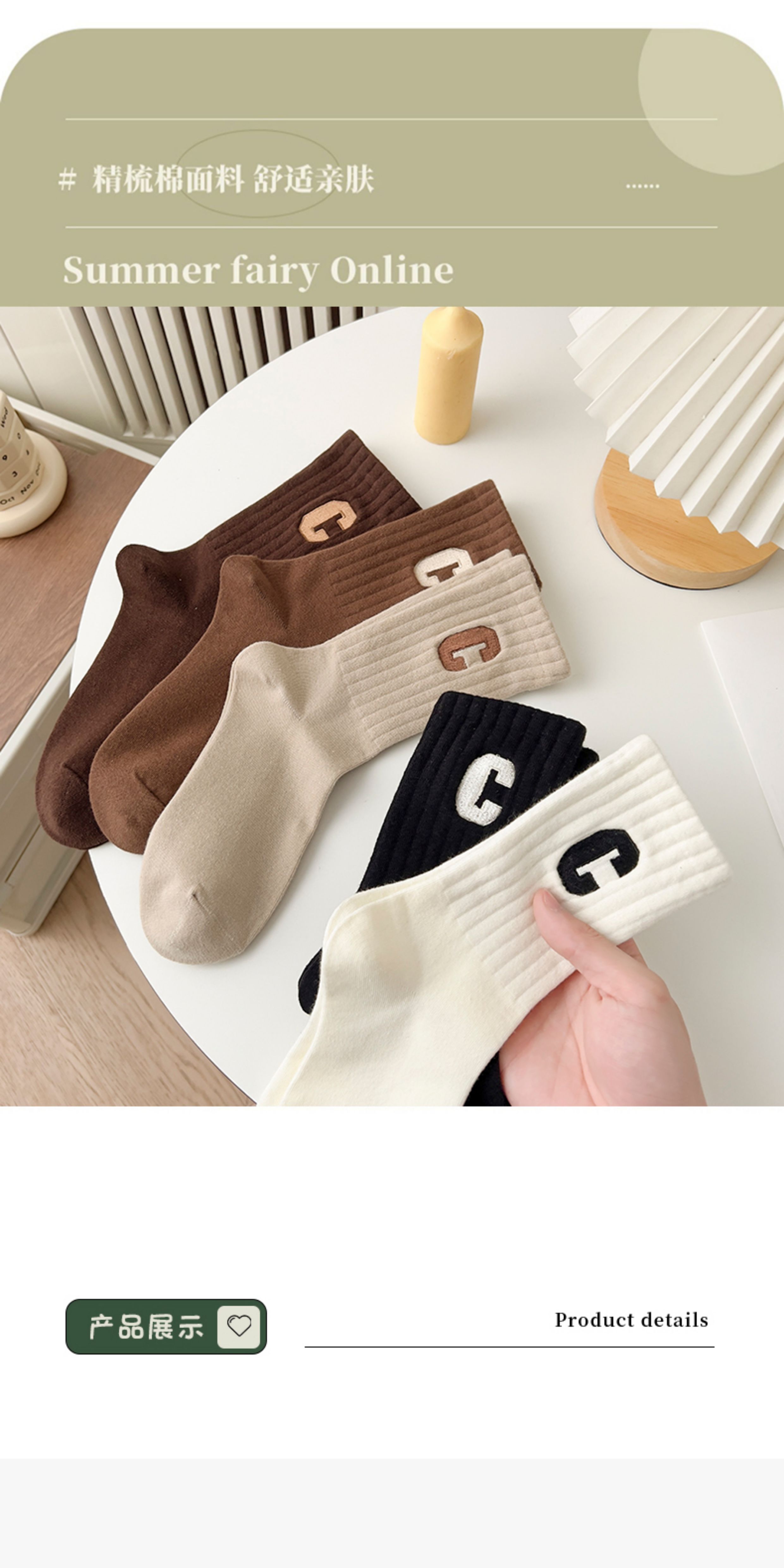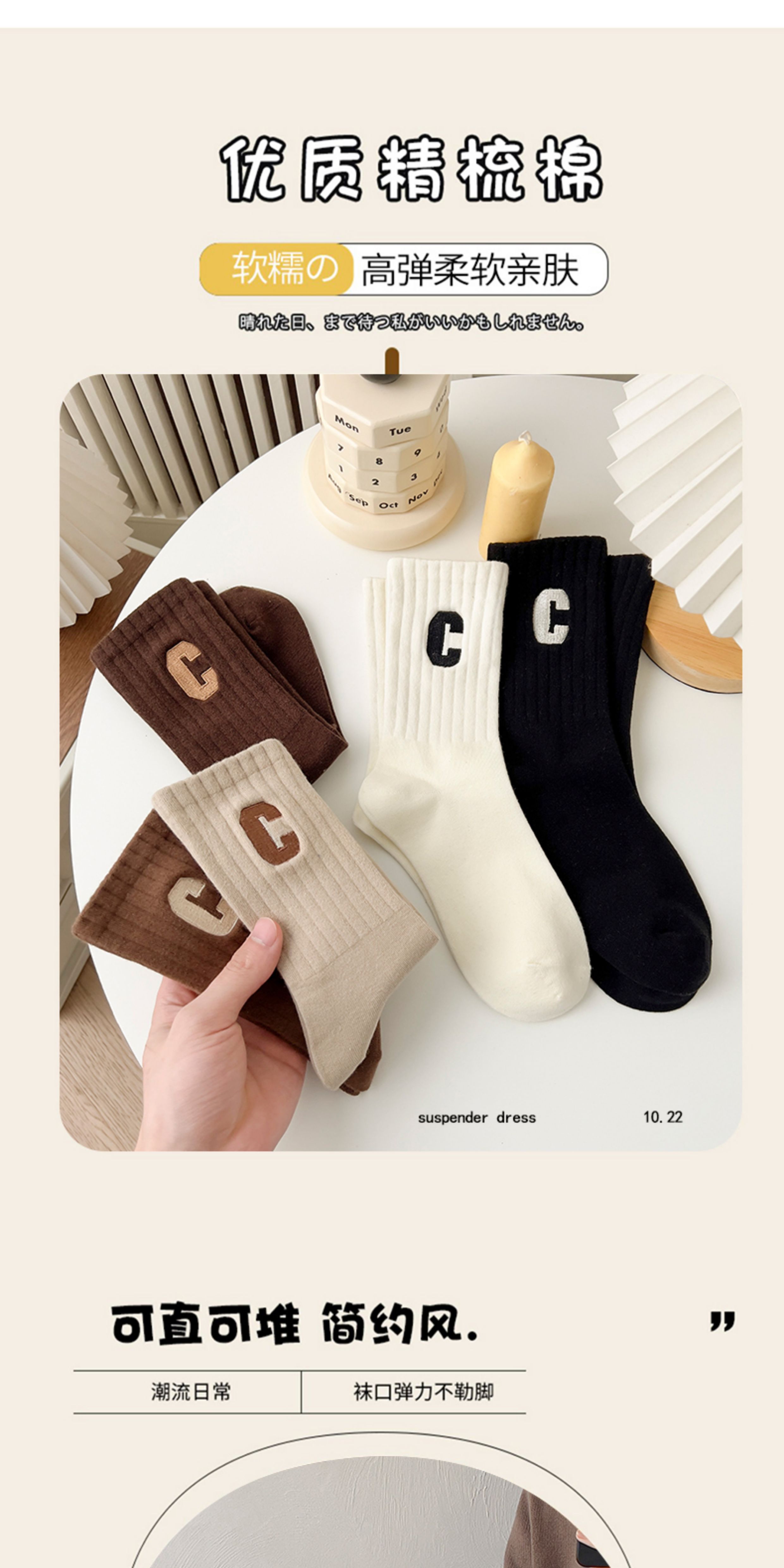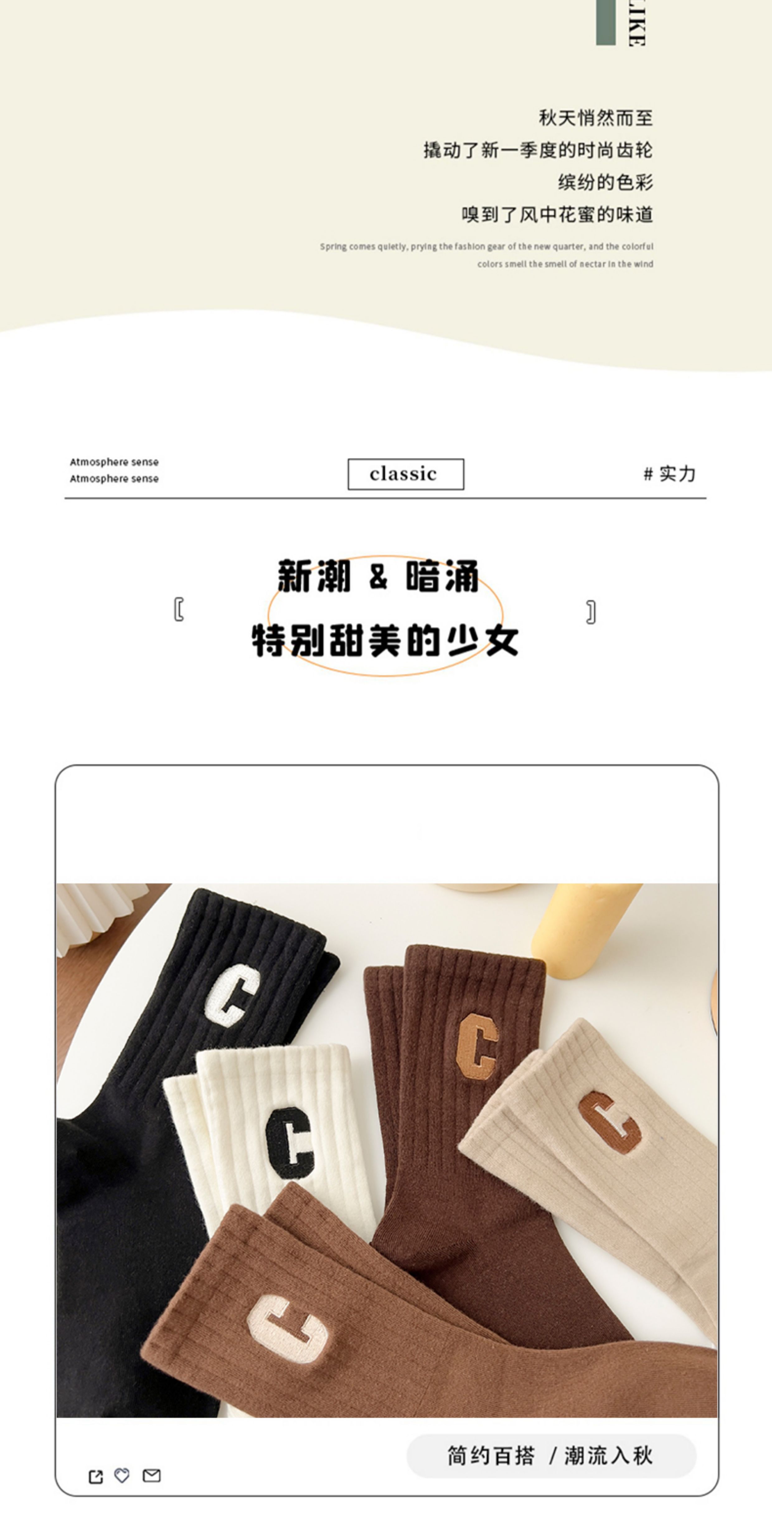 Socks Women's 2025 new explosive spring and autumn mid-tube cotton anti-odor thin model with shark pants large C letter stockings