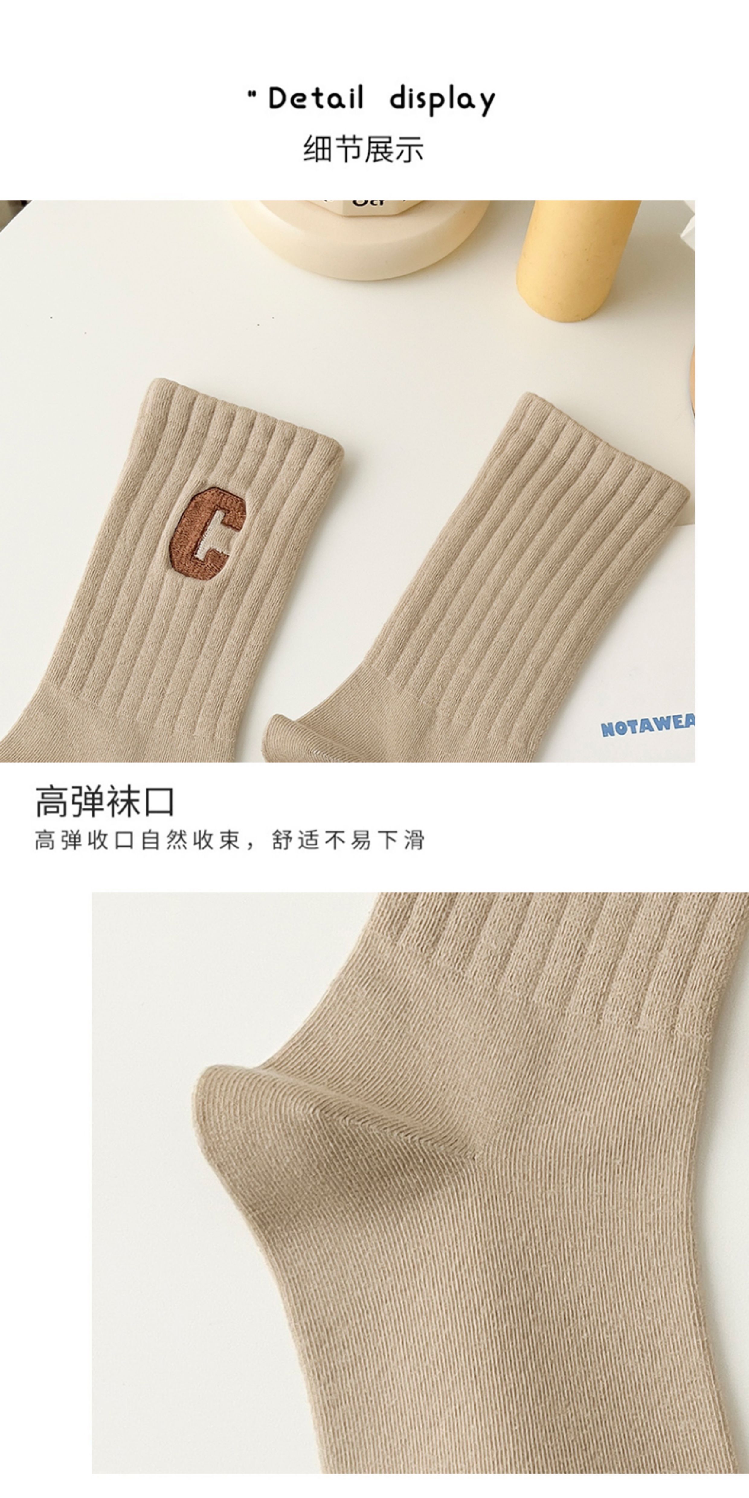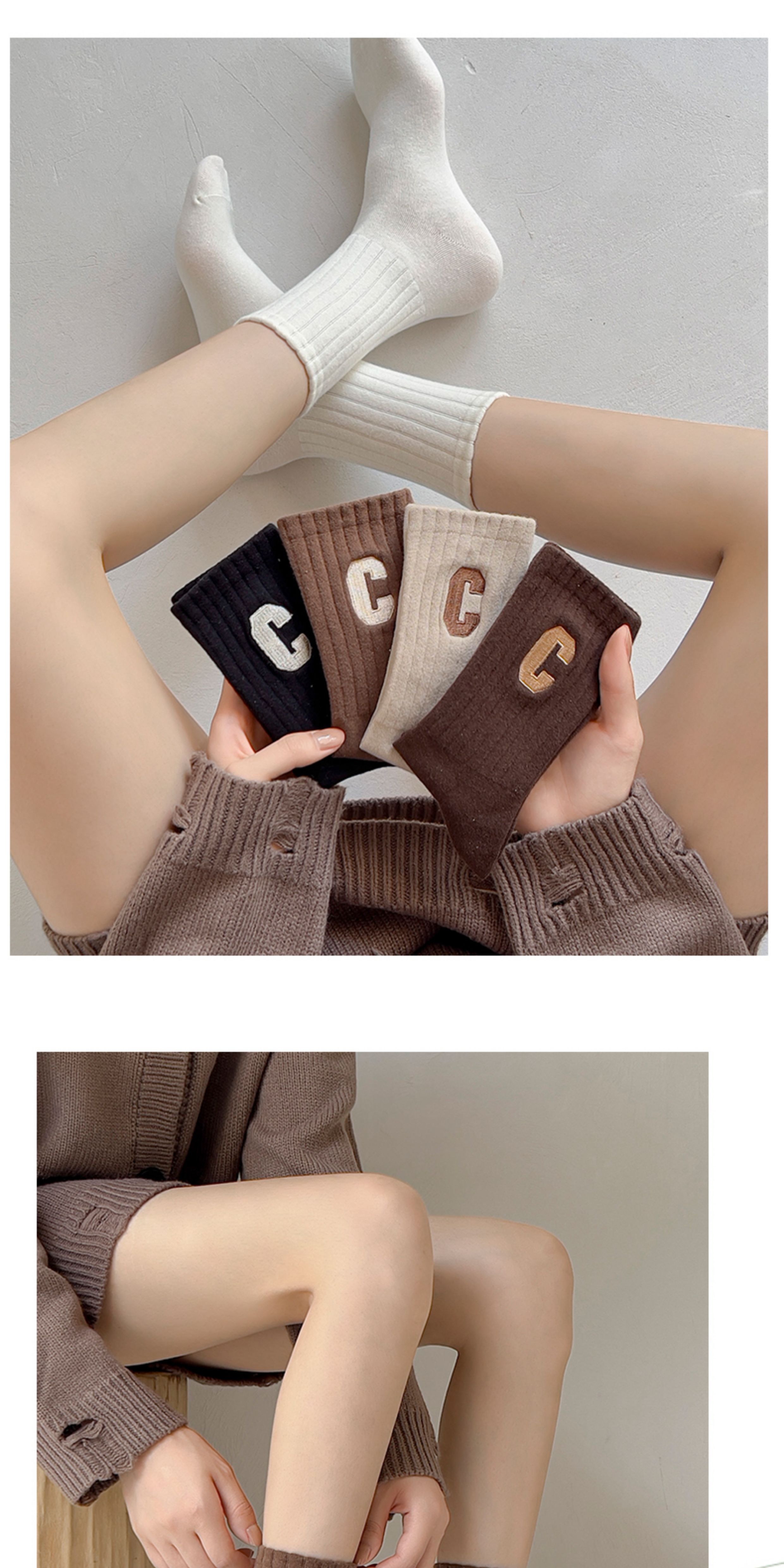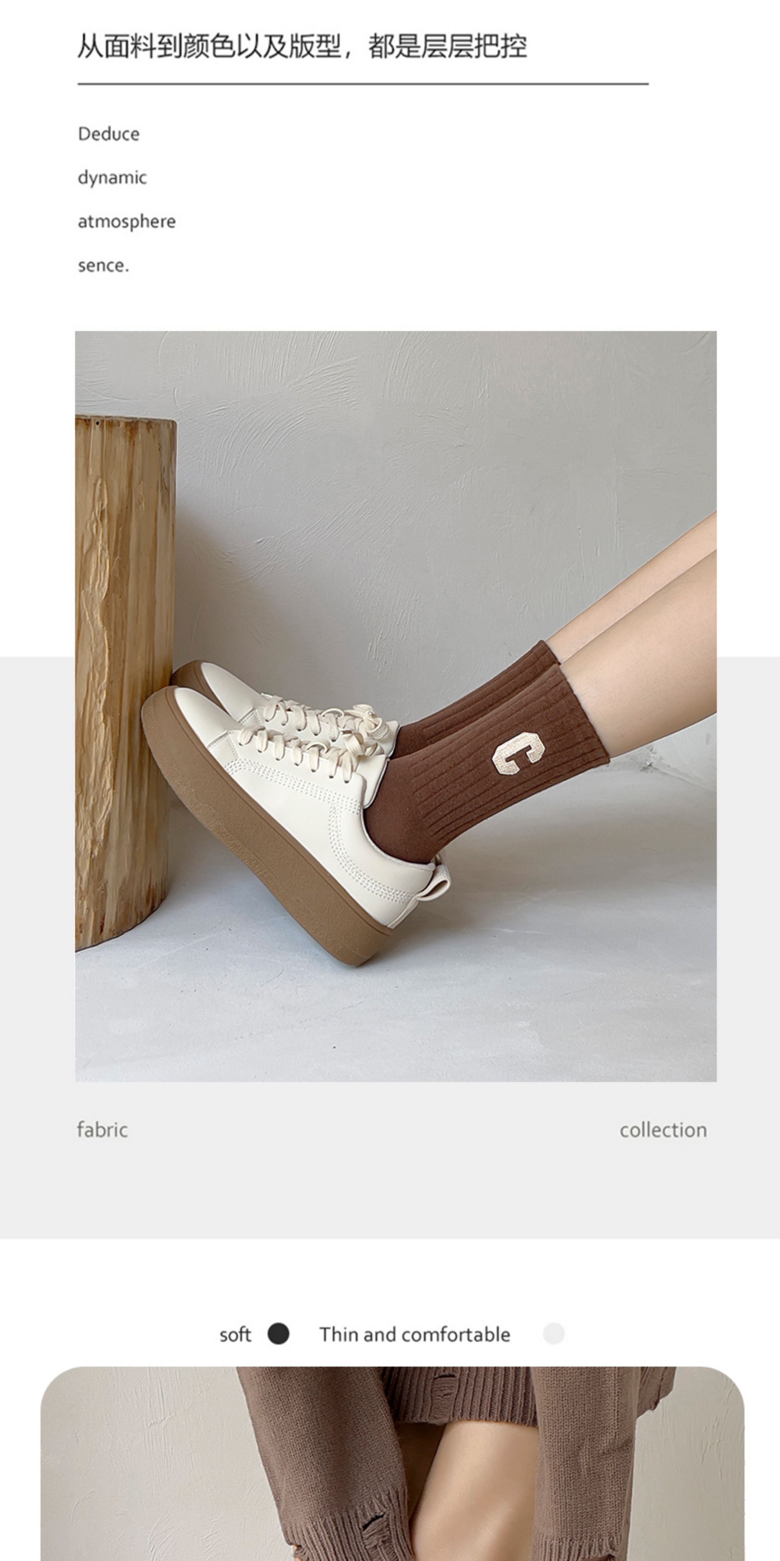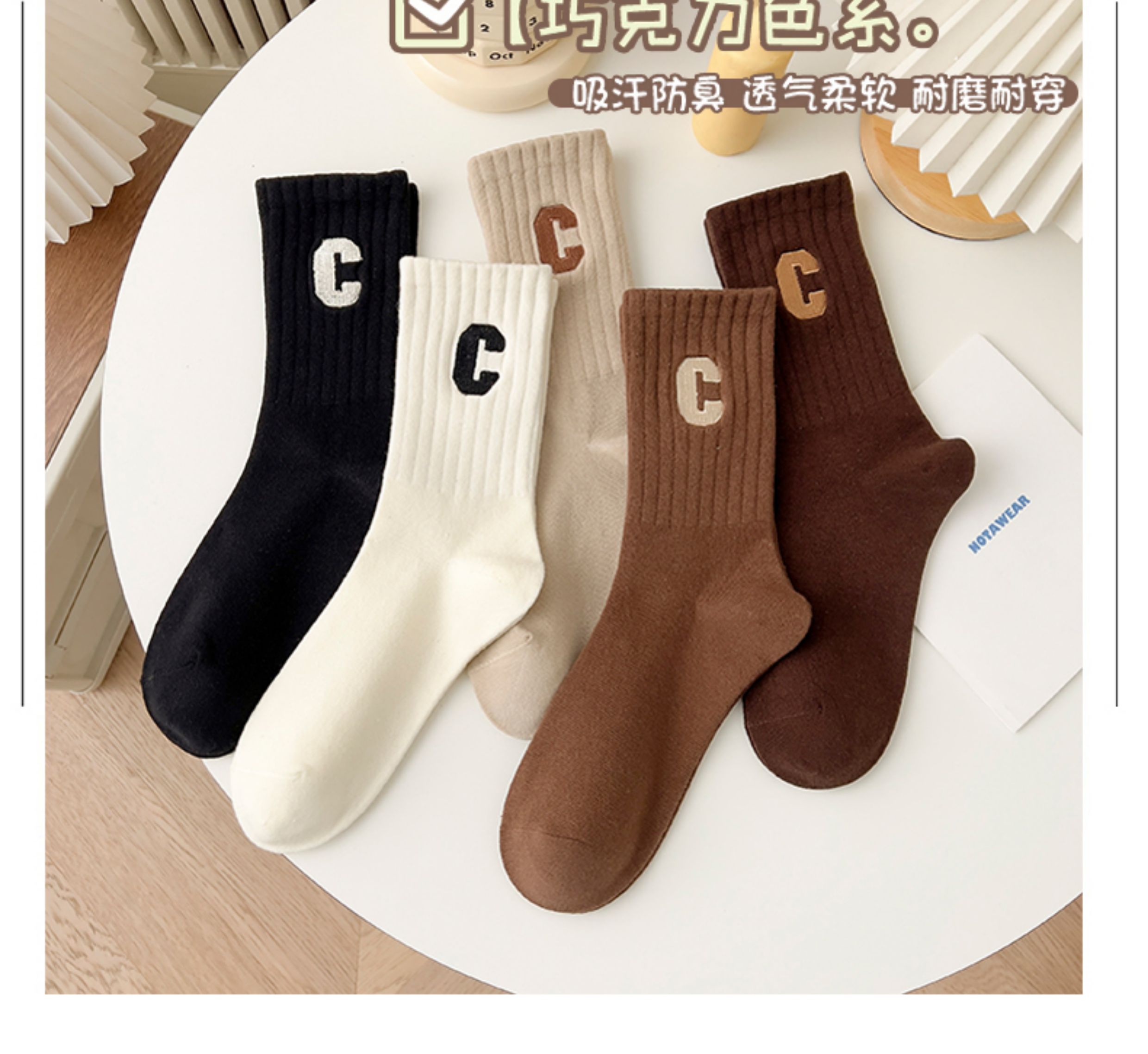 Socks Women's 2025 new explosive spring and autumn mid-tube cotton anti-odor thin model with shark pants large C letter stockings