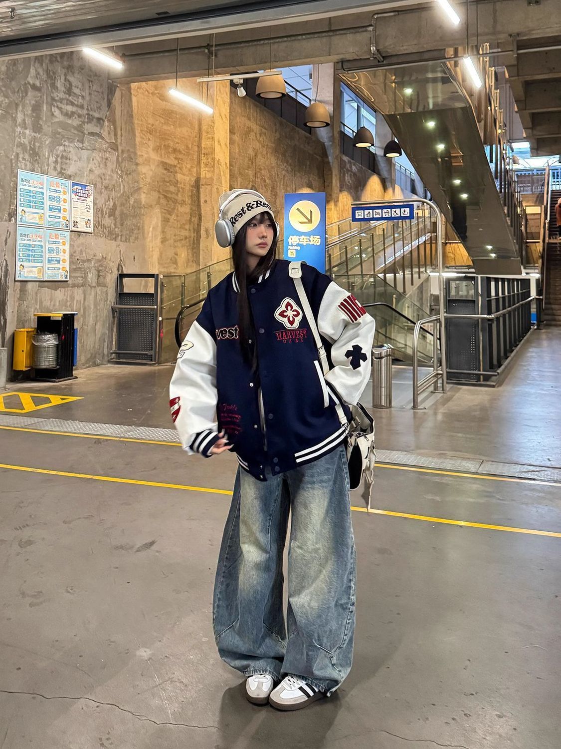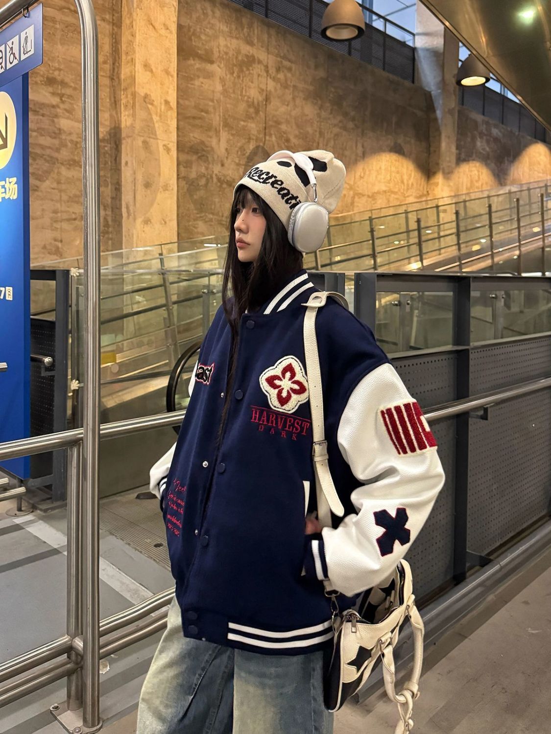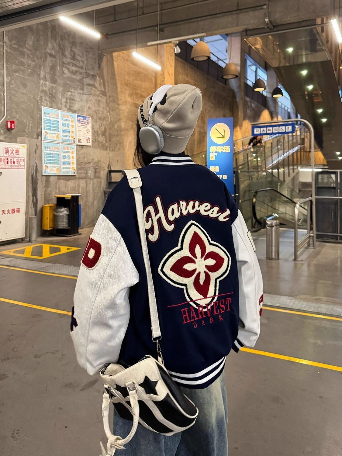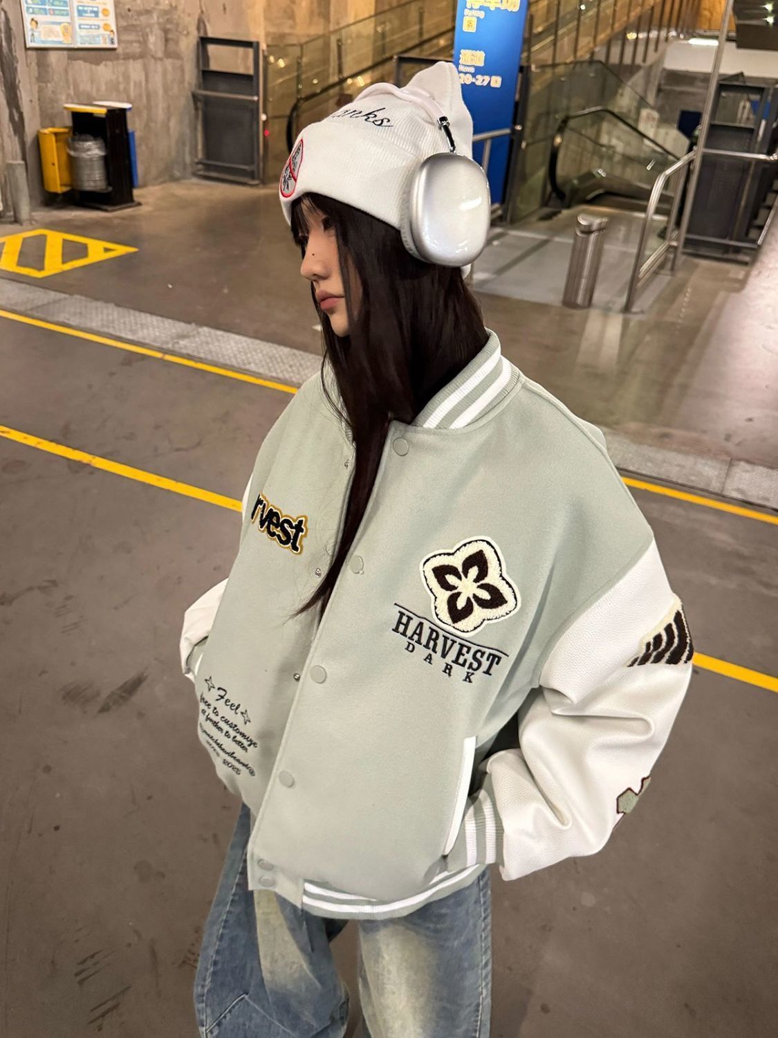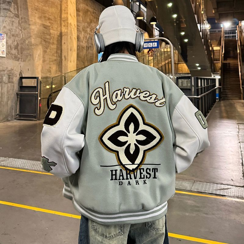Plus size 300 pounds American retro embroidery spliced baseball uniform men's and women's 2025 spring and autumn trendy motorcycle jacket