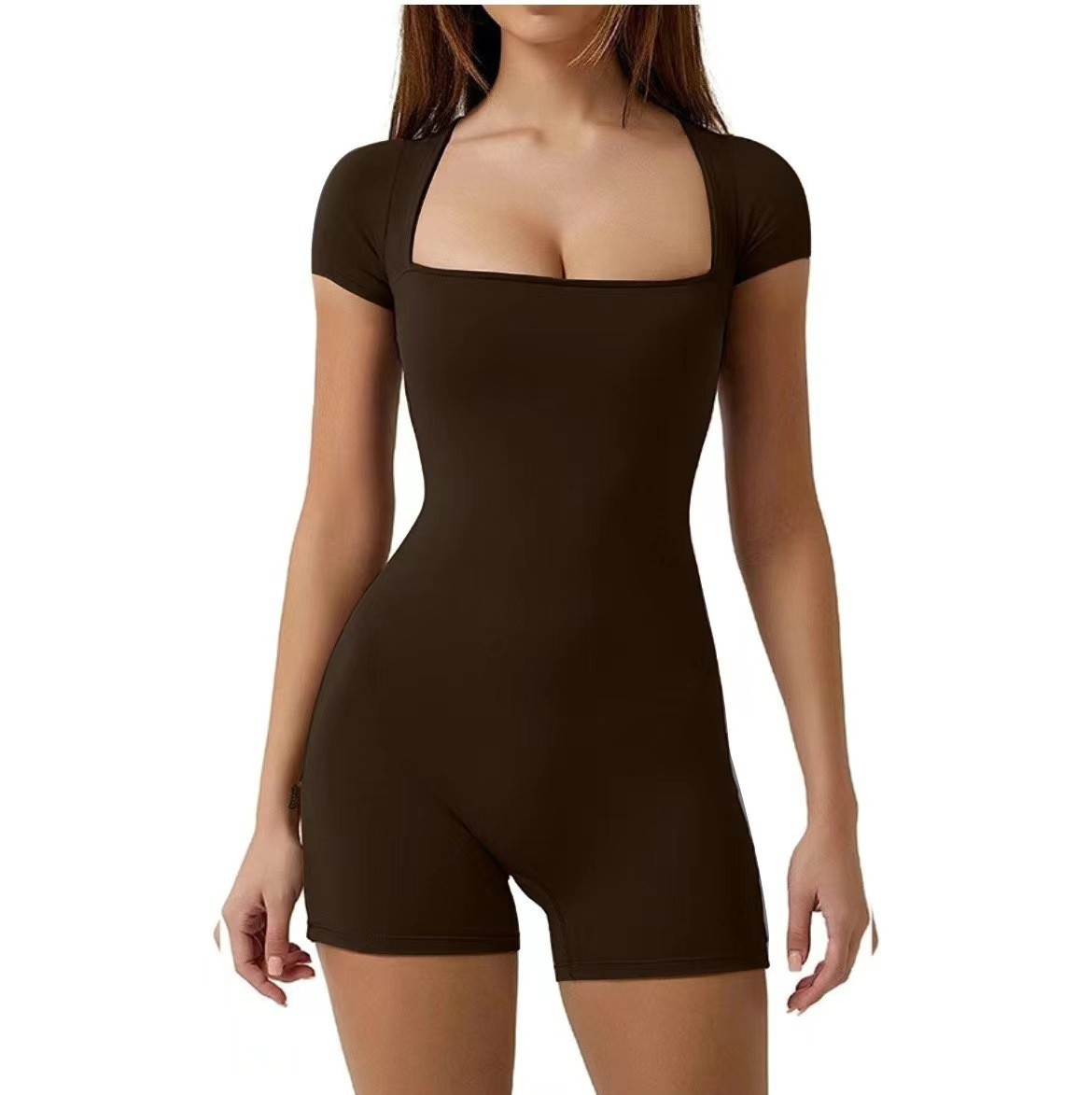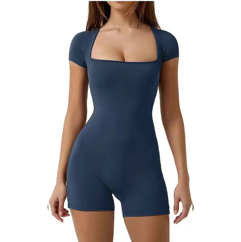 2025 spring/summer new European and American short-sleeved yoga clothes, casual sports jumpsuits, waist shapewear