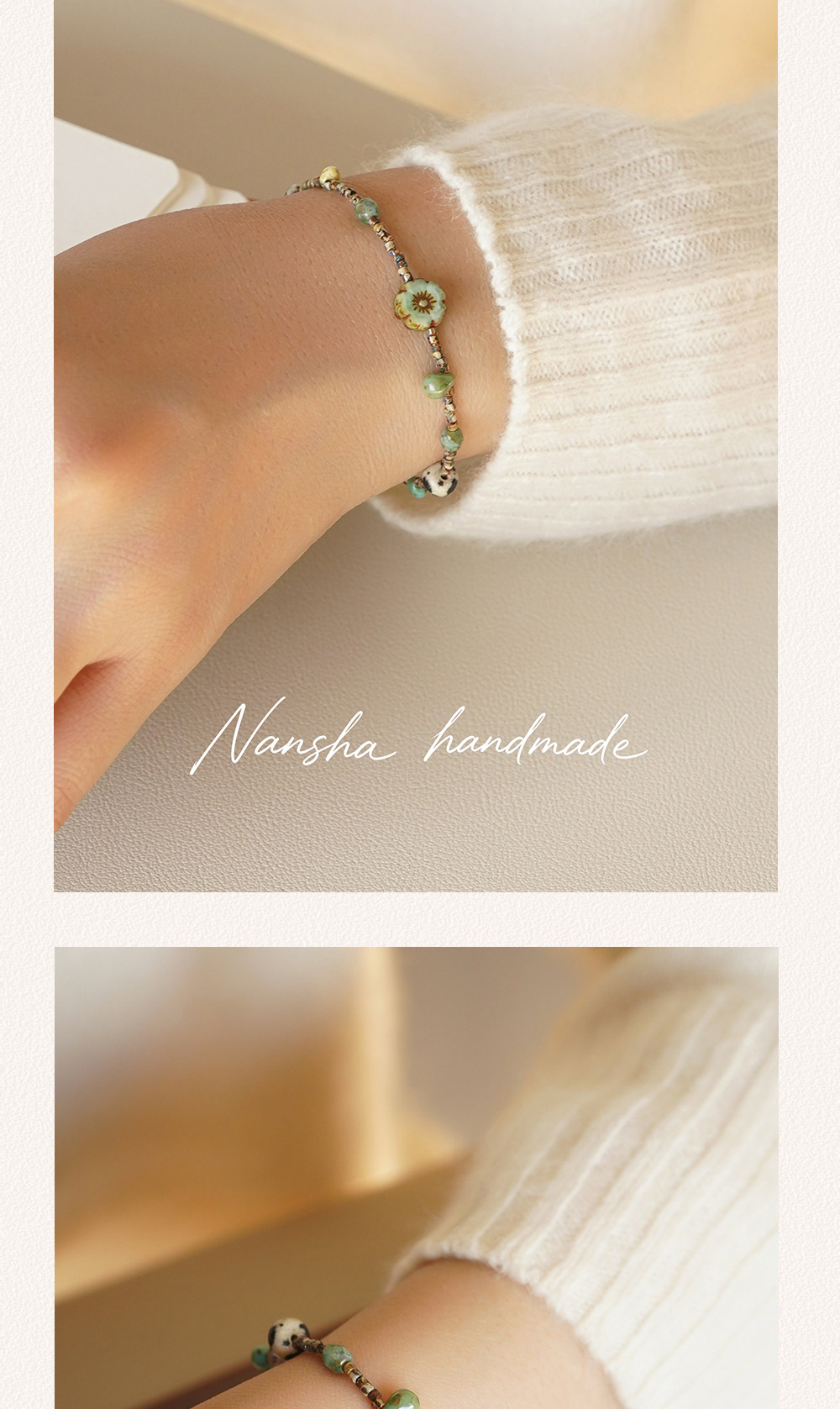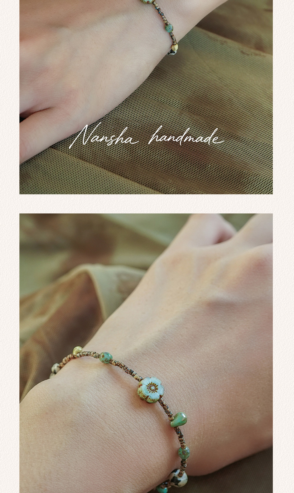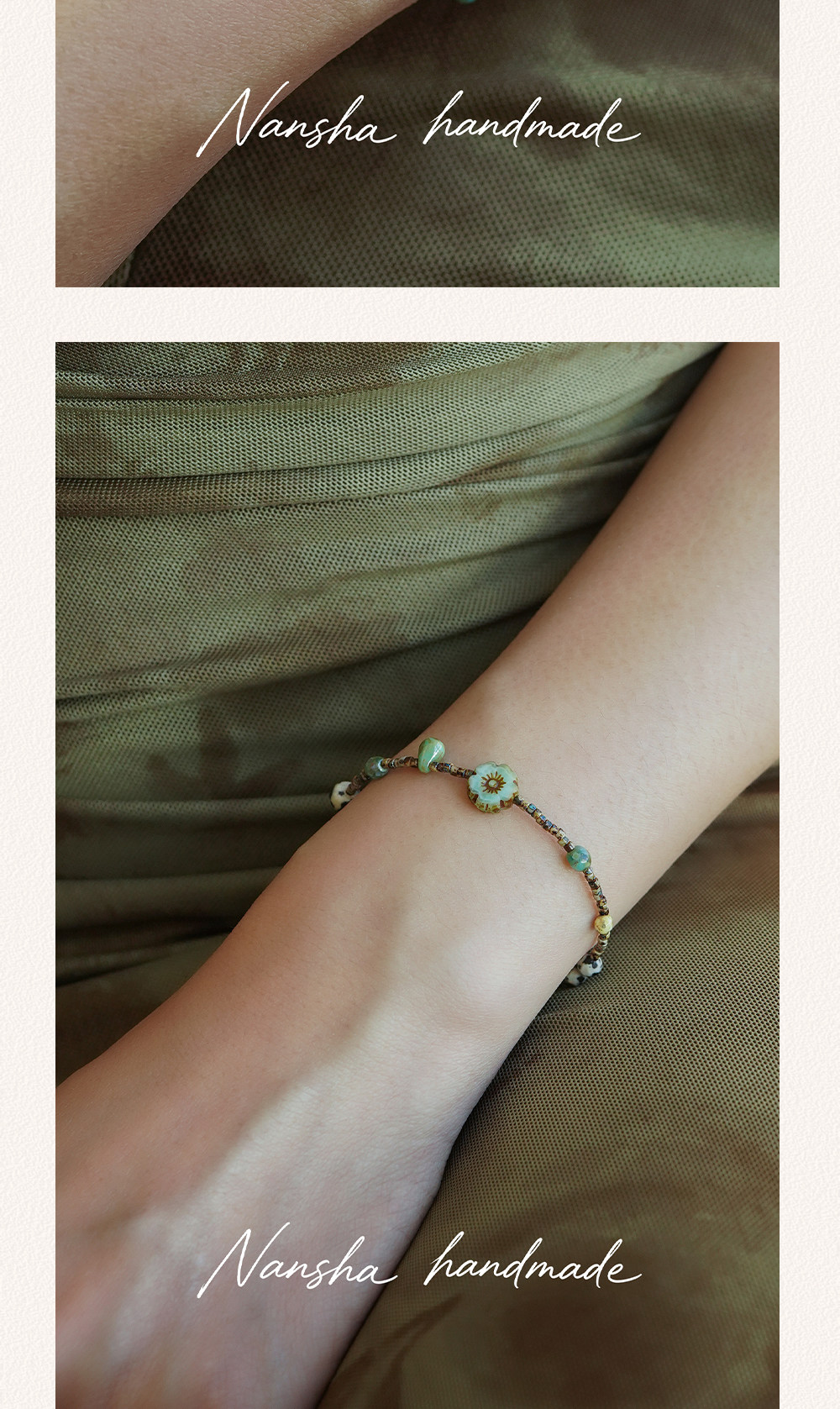Nanshu original "Green Bo" retro Czech bead bracelet feminine temperament simple and versatile medieval vintage bracelet