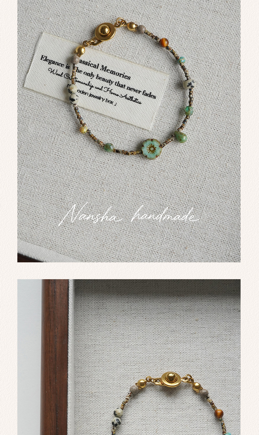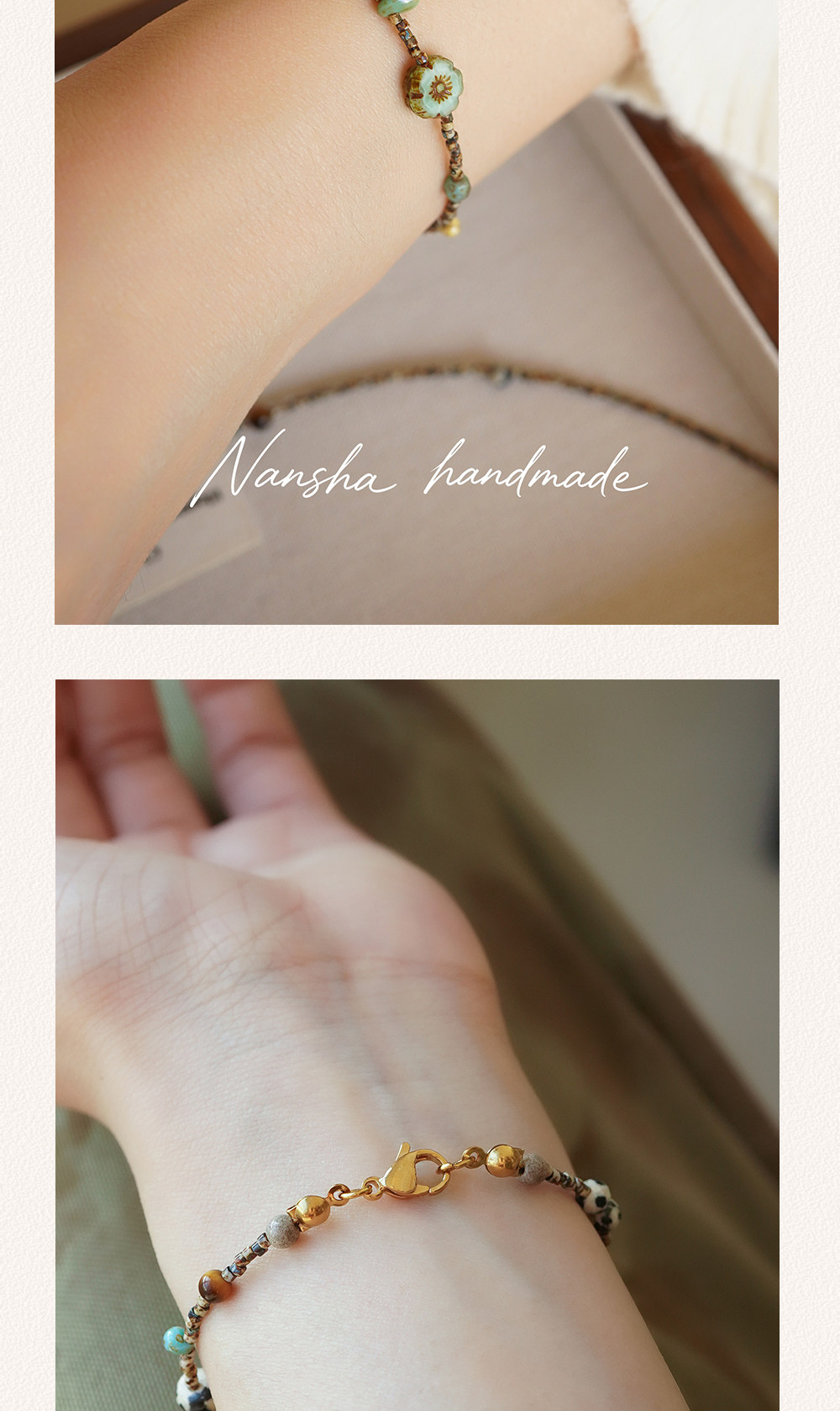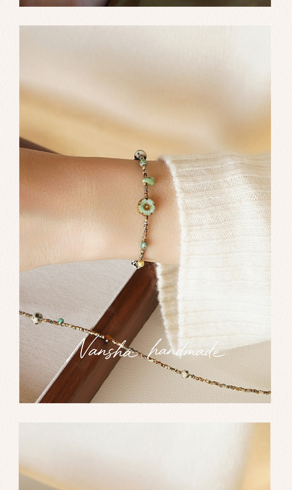Nanshu original "Green Bo" retro Czech bead bracelet feminine temperament simple and versatile medieval vintage bracelet