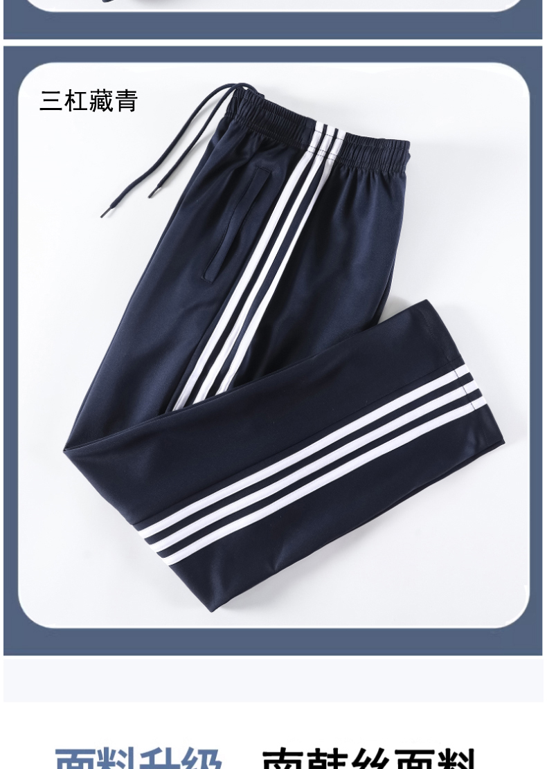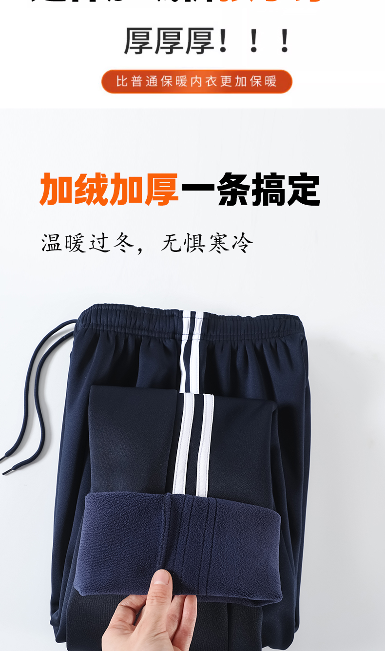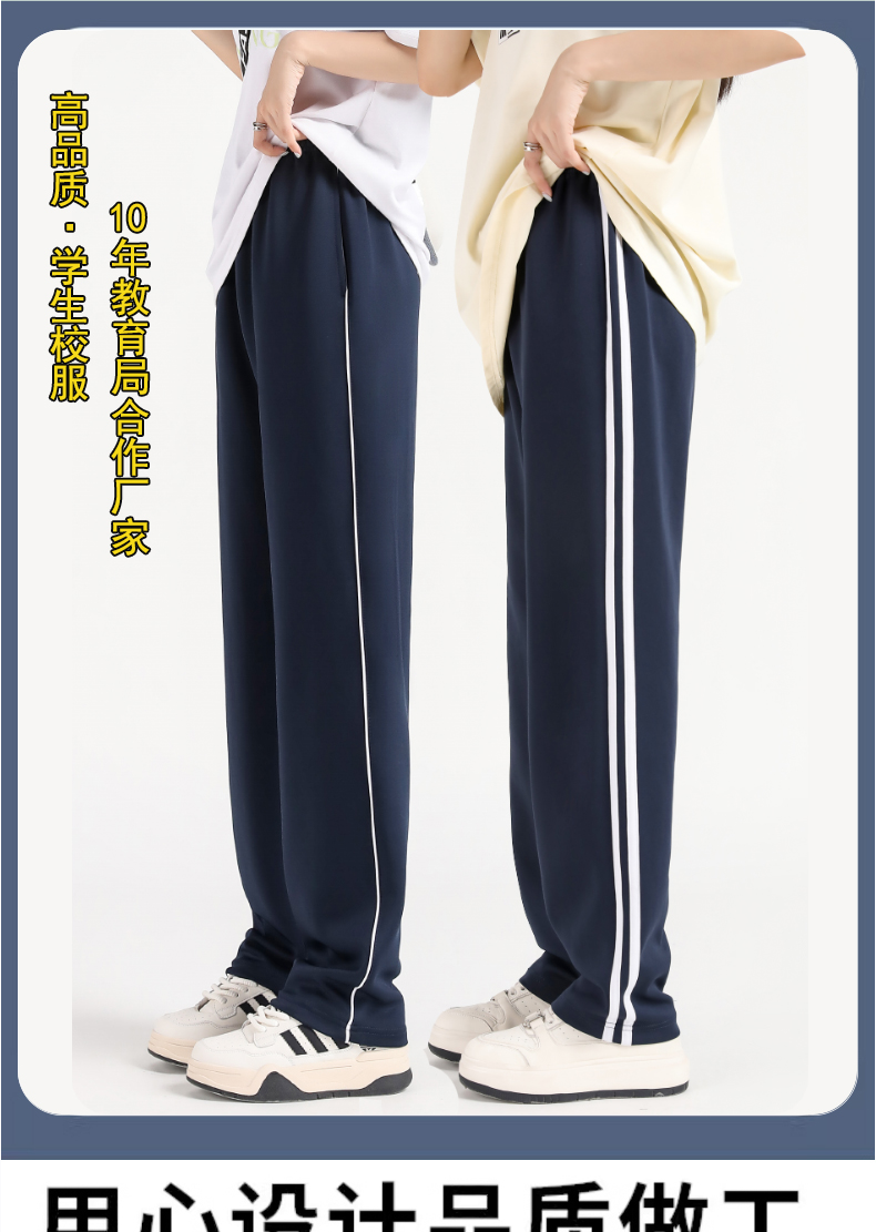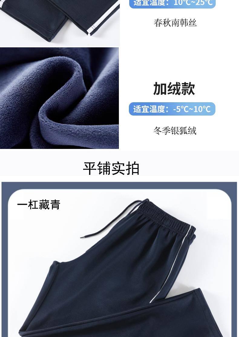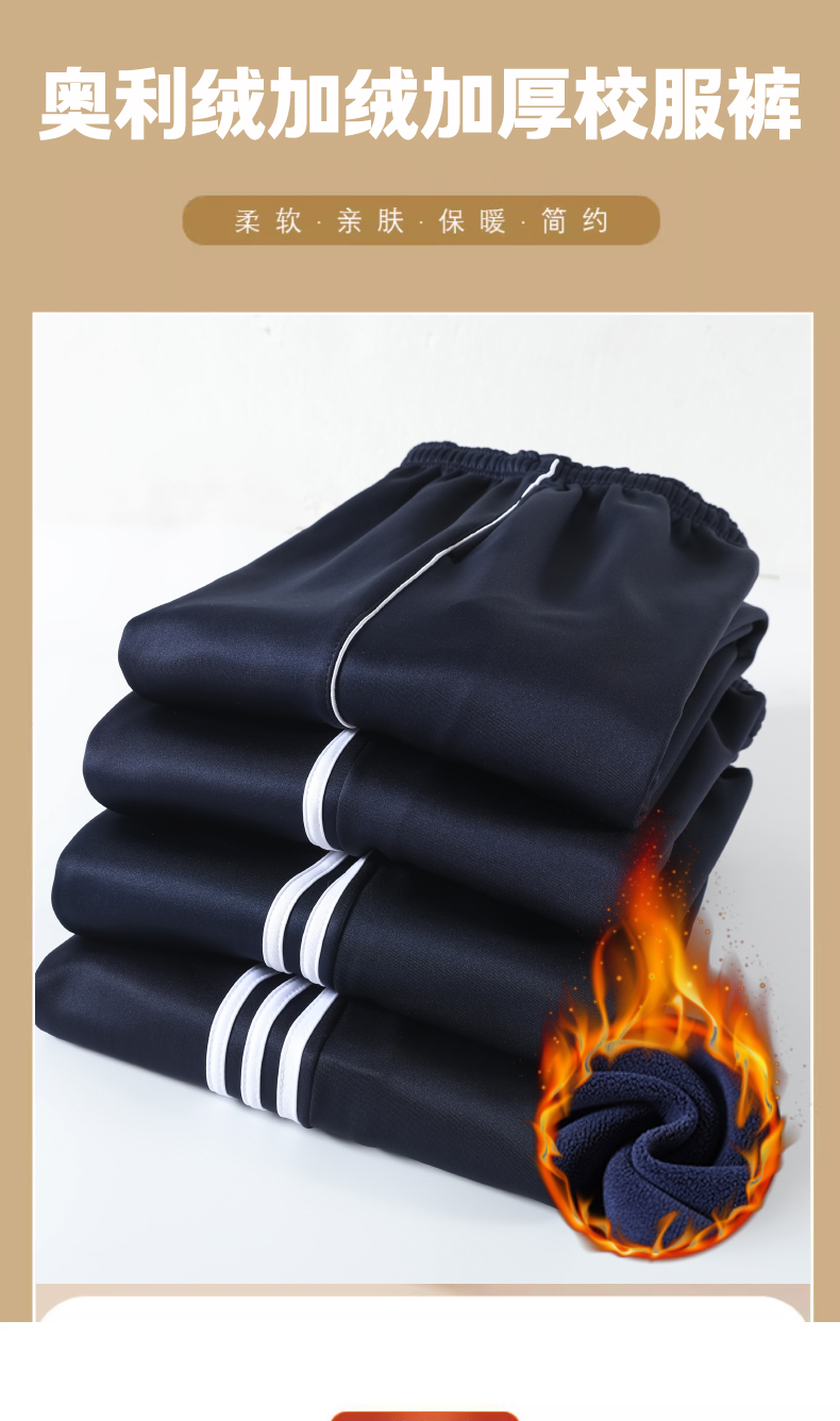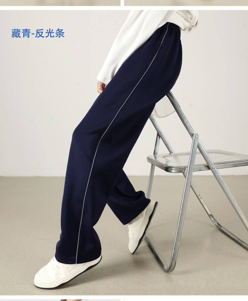 School uniform pants, reflective strips, navy blue spring and autumn winter fleece, navy blue straight-leg pants for junior high and high school students