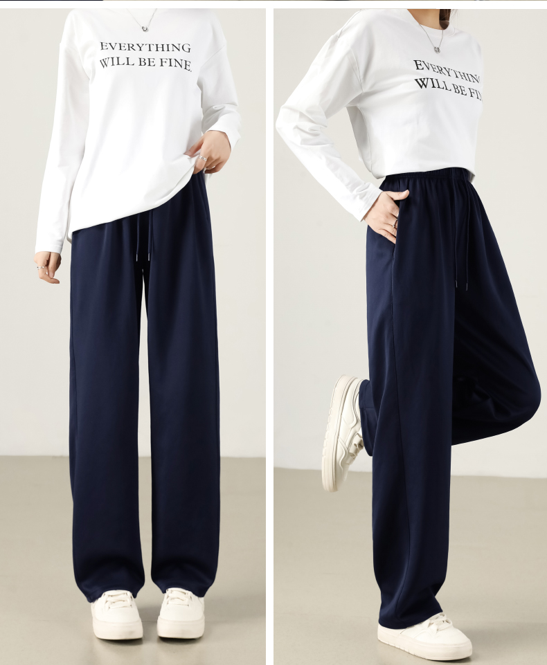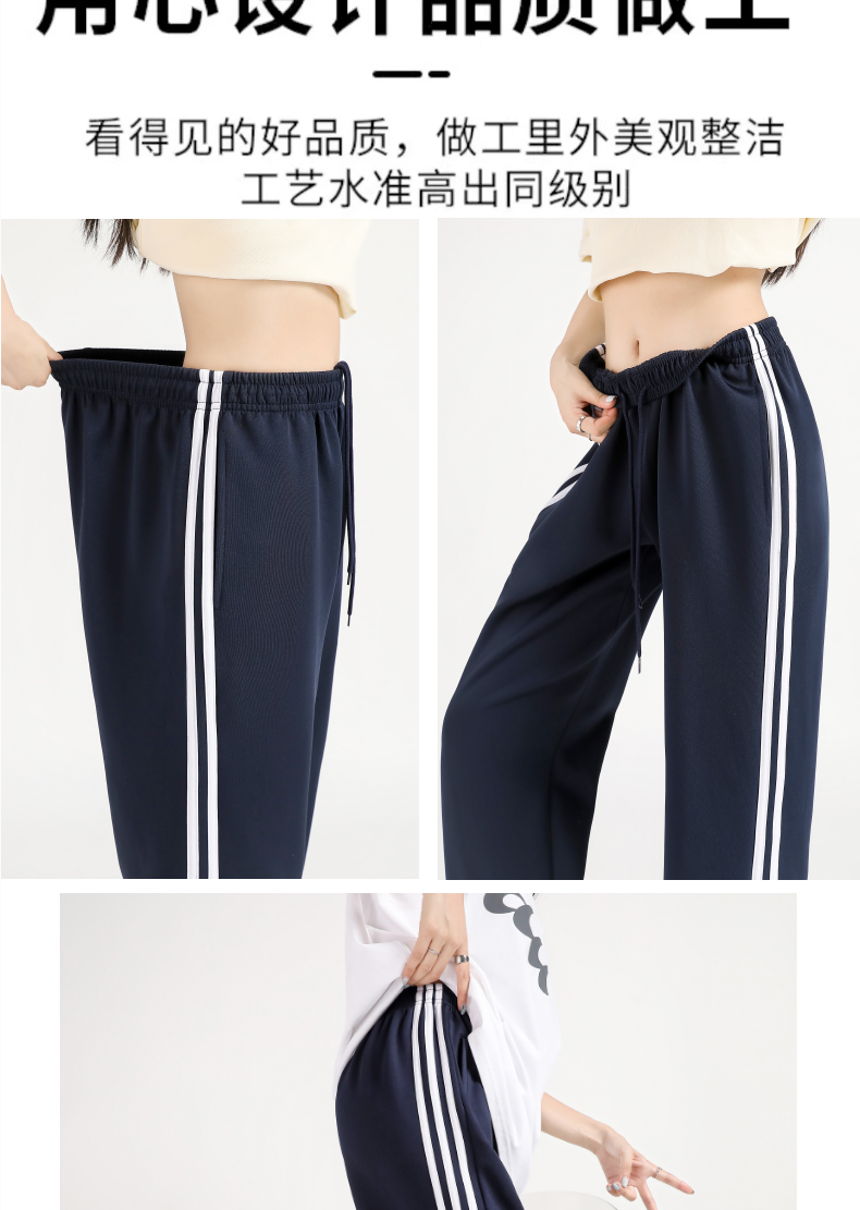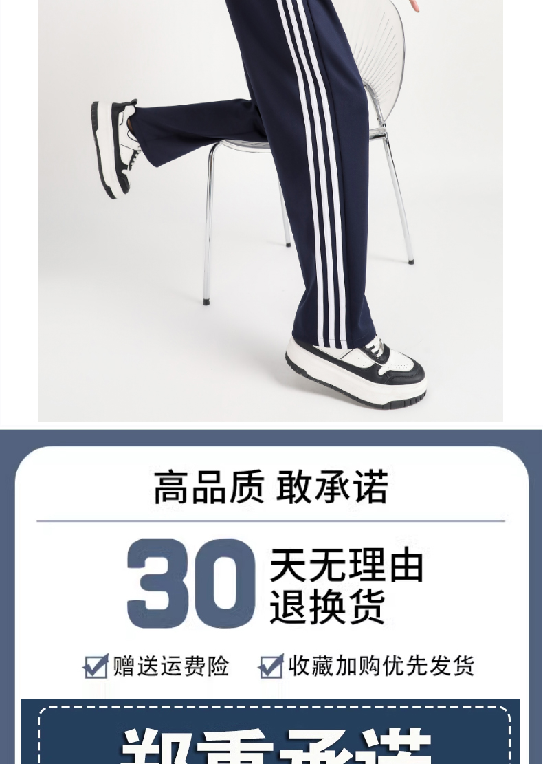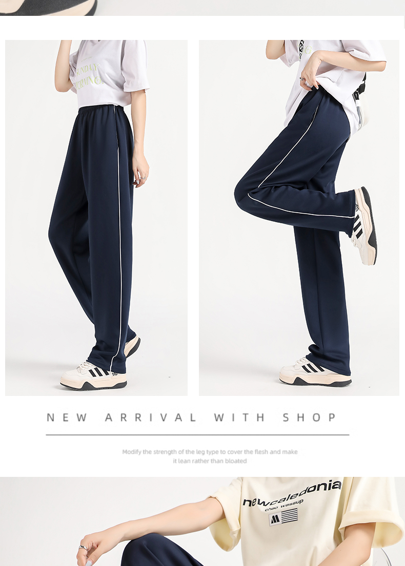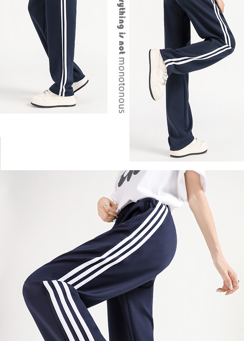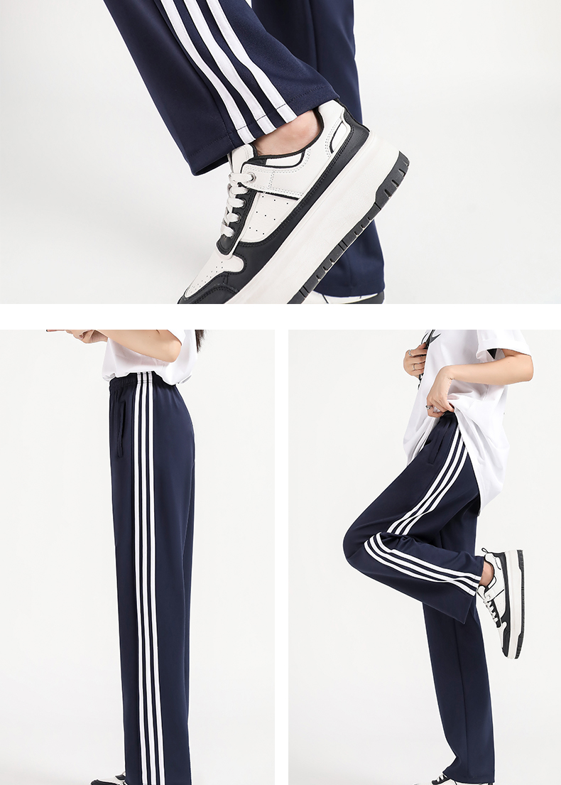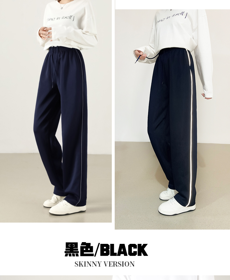 School uniform pants, reflective strips, navy blue spring and autumn winter fleece, navy blue straight-leg pants for junior high and high school students