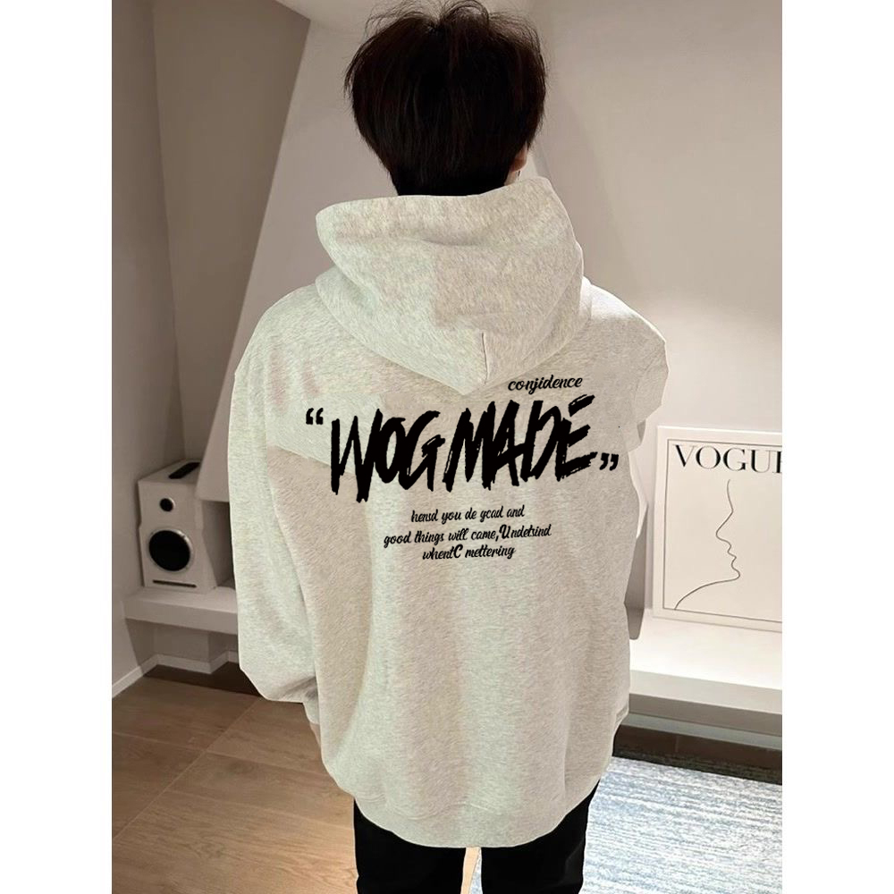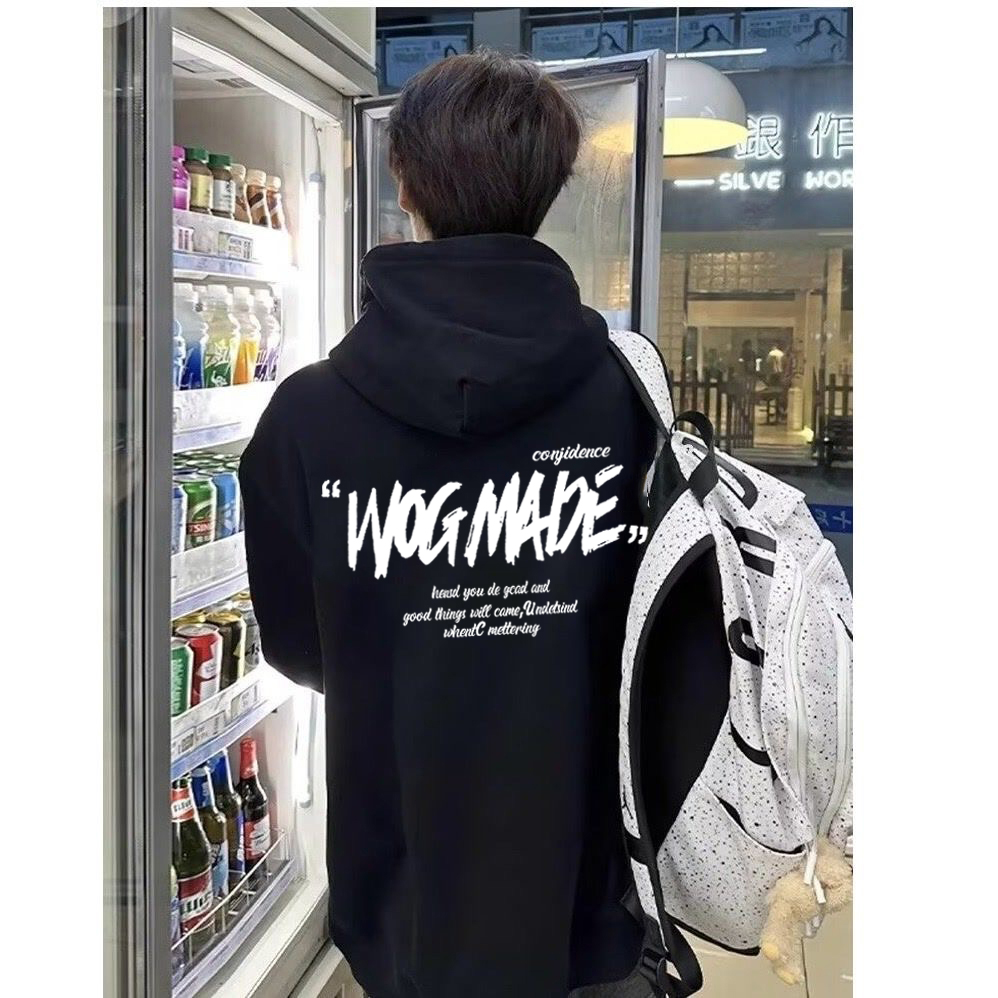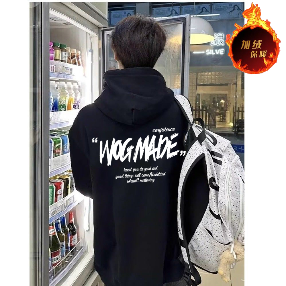 Trendy brand alphabet American hooded sweatshirt for boys, loose fleece in autumn and winter, thickened versatile jacket, teenage top