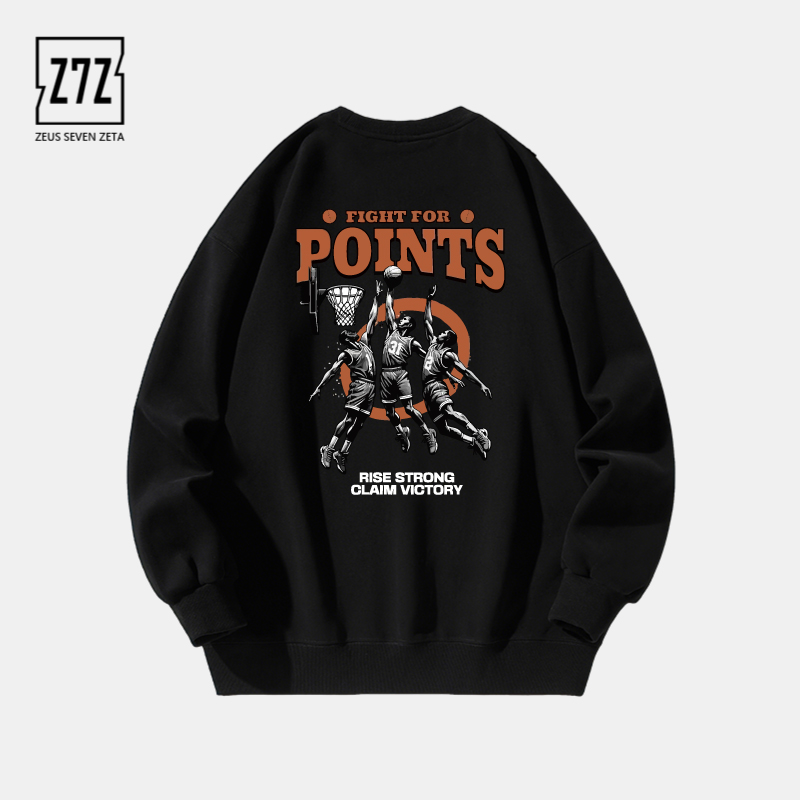 British Z7Z official basketball figure grabbing rebound graffiti sweatshirt men's loose crew neck long sleeves counter synchronization