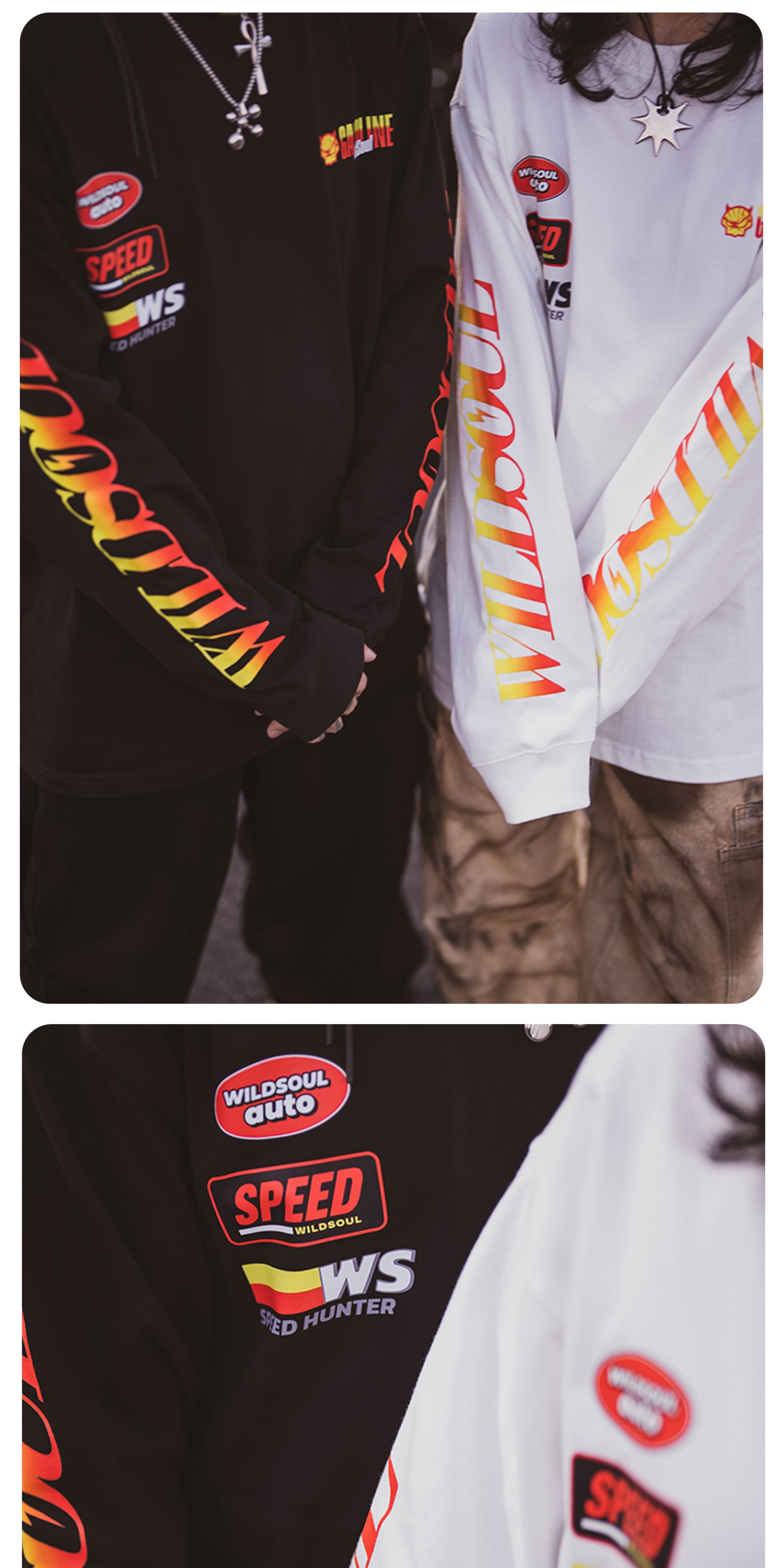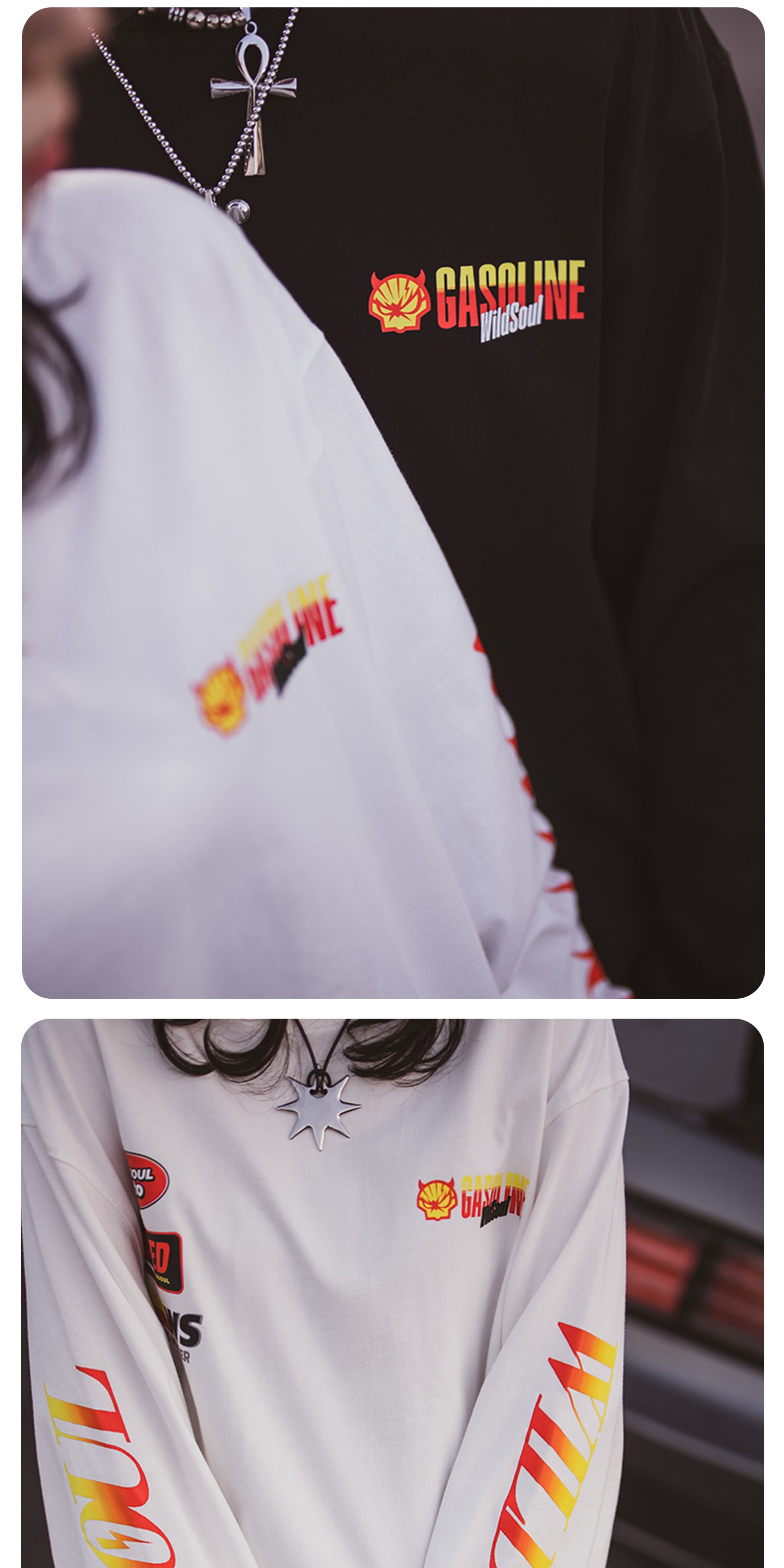 wildsoul "Fuel Kid" spoofs Shell's autumn and winter heavyweight 320 cotton printed loose long-sleeved T-shirt